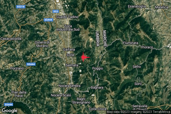Debole #Terremoto M2.6 epicentro 6 km NE Nocera Umbra (PG) alle 00:19:51 (23:19:51 UTC)
