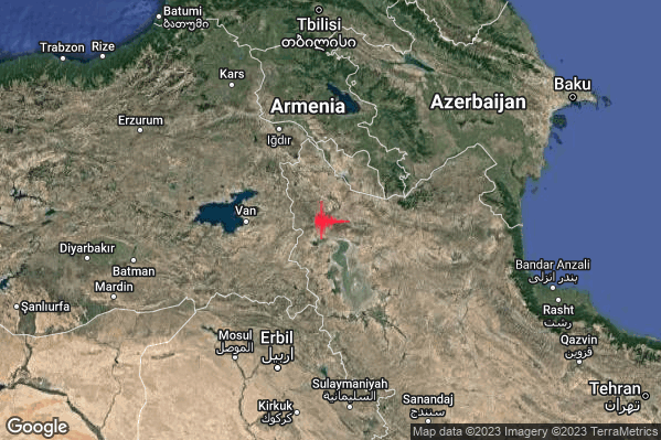 Violento Terremoto di magnitudo M5.7 registrato alle 11:08:16 (ora locale Italiana – 10:08:16 UTC) di oggi con epicentro “Iran [Land] Latitudine: 38.52 Longitudine: 45.04 mostrato sulla mappa.