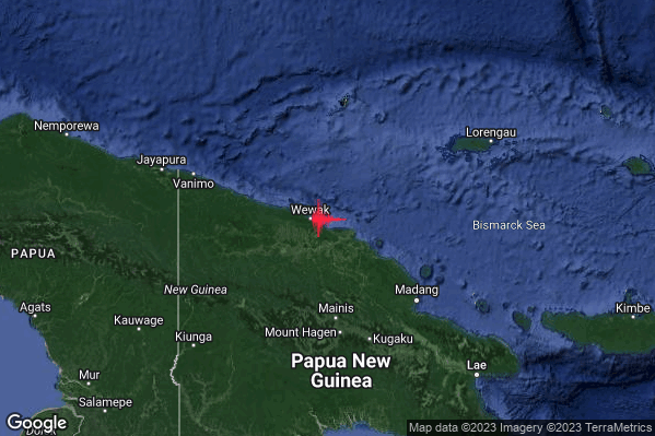 Estremo #Terremoto M6.4 epicentro Near north coast of New Guinea Papua New Guinea [Sea: Papua New Guinea] alle 22:46:43 (21:46:43 UTC)