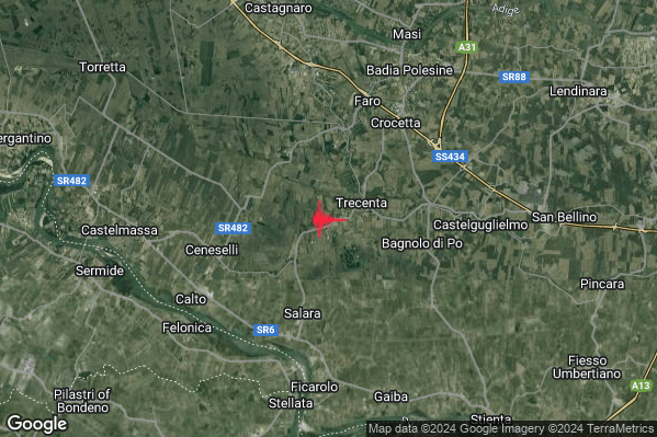 Lieve #Terremoto di magnitudo M2.2 registrato alle 14:55:18 (ora locale Italiana – 12:55:18 UTC) di oggi con epicentro “2 km W Trecenta (RO)” Latitudine: 45.03 Longitudine: 11.44 mostrato sulla mappa.