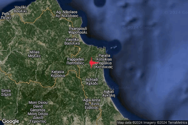 Intenso #Terremoto di magnitudo M4.6 registrato alle 04:02:45 (ora locale Italiana – 02:02:45 UTC) di oggi con epicentro “Greece” Latitudine: 38.93 Longitudine: 23.4 mostrato sulla mappa.