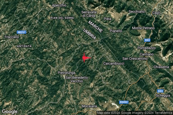 Debole #Terremoto di magnitudo M2.5 registrato alle 10:59:41 (ora locale Italiana – 09:59:41 UTC) di oggi con epicentro “5 km NE Pietralunga (PG) Latitudine: 43.47 Longitudine: 12.48 mostrato sulla mappa.