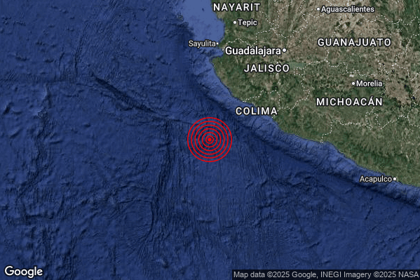 Oggi 25/09/2025 alle ore 12:16:29 (ora locale Italiana – 10:16:29 UTC) è stato registrato un Violento #Terremoto di magnitudo M5.8 con epicentro “Off coast of Jalisco Mexico [Sea: Mexico]” Latitudine: 18.05 Longitudine: -105.7 mostrato sulla mappa.