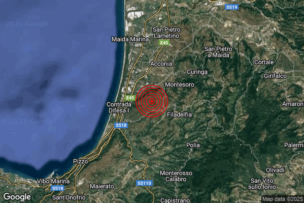 Oggi 06/10/2025 alle ore 23:57:57 (ora locale Italiana – 21:57:57 UTC) è stato registrato un Lieve #Terremoto di magnitudo M2.0 con epicentro “2 km NW Francavilla Angitola (VV)” Latitudine: 38.8 Longitudine: 16.26 mostrato sulla mappa.