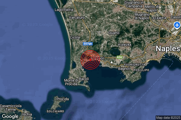Oggi 12/10/2025 alle ore 15:35:50 (ora locale Italiana – 13:35:50 UTC) è stato registrato un Debole #Terremoto di magnitudo M2.5 con epicentro “Campi Flegrei” Latitudine: 40.83 Longitudine: 14.09 mostrato sulla mappa.