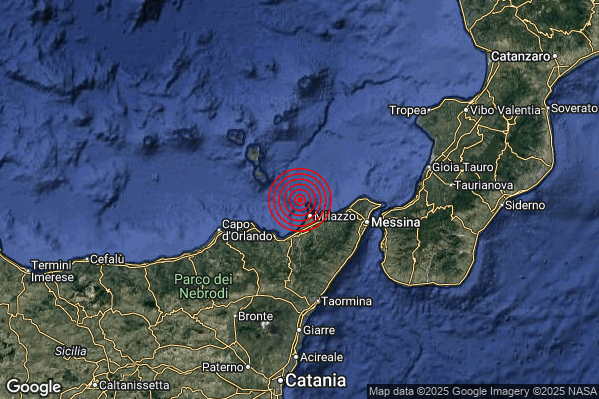 N.B. I valori della magnitudo e delle coordinate rappresentano la migliore stima con i dati ufficiali a disposizione. Eventuali nuovi dati o ulteriori analisi potrebbero far variare tali stime.