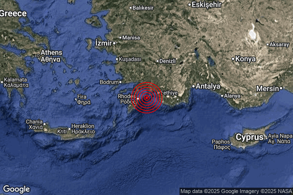 Oggi 22/10/2025 alle ore 04:45:24 (ora locale Italiana – 02:45:24 UTC) è stato registrato un Intenso #Terremoto di magnitudo M4.7 con epicentro “Turkey [Sea]” Latitudine: 36.49 Longitudine: 28.59 mostrato sulla mappa.