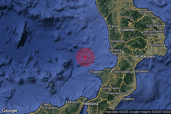 N.B. I valori della magnitudo e delle coordinate rappresentano la migliore stima con i dati ufficiali a disposizione. Eventuali nuovi dati o ulteriori analisi potrebbero far variare tali stime.