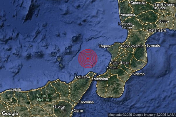 N.B. I valori della magnitudo e delle coordinate rappresentano la migliore stima con i dati ufficiali a disposizione. Eventuali nuovi dati o ulteriori analisi potrebbero far variare tali stime.