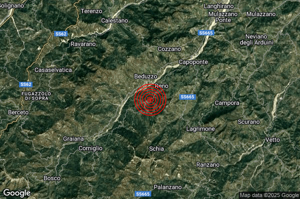 N.B. I valori della magnitudo e delle coordinate rappresentano la migliore stima con i dati ufficiali a disposizione. Eventuali nuovi dati o ulteriori analisi potrebbero far variare tali stime.