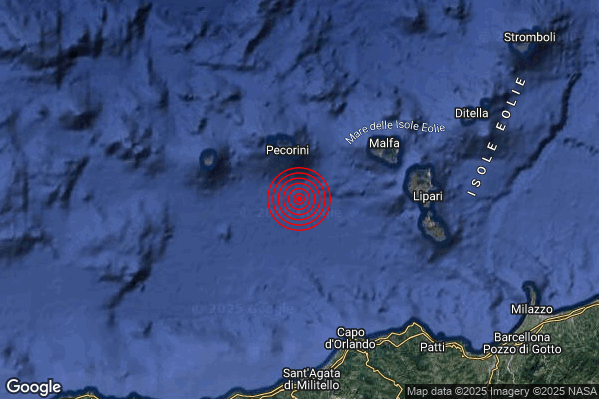Oggi 21/12/2025 alle ore 15:26:55 (ora locale Italiana – 14:26:55 UTC) è stato registrato un Debole #Terremoto di magnitudo M2.4 con epicentro “Isole Eolie (Messina)” Latitudine: 38.46 Longitudine: 14.6 mostrato sulla mappa.