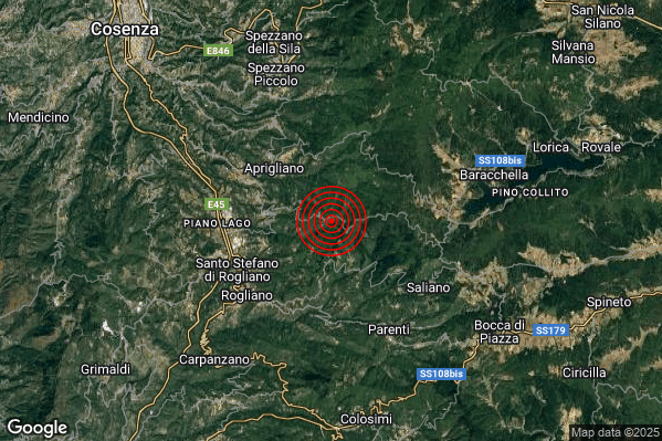 Oggi 21/12/2025 alle ore 17:40:52 (ora locale Italiana – 16:40:52 UTC) è stato registrato un Lieve #Terremoto di magnitudo M2.0 con epicentro “4 km E Cellara (CS)” Latitudine: 39.22 Longitudine: 16.38 mostrato sulla mappa.