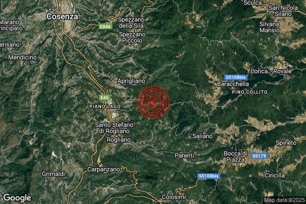 Oggi 21/12/2025 alle ore 17:42:23 (ora locale Italiana – 16:42:23 UTC) è stato registrato un Lieve #Terremoto di magnitudo M2.1 con epicentro “3 km E Cellara (CS)” Latitudine: 39.22 Longitudine: 16.37 mostrato sulla mappa.