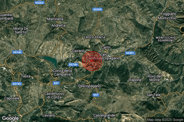 Oggi 23/12/2025 alle ore 05:28:44 (ora locale Italiana – 04:28:44 UTC) è stato registrato un Lieve #Terremoto di magnitudo M2.0 con epicentro “3 km SE Cairano (AV)” Latitudine: 40.88 Longitudine: 15.4 mostrato sulla mappa.