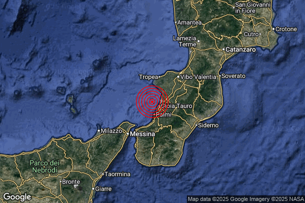 N.B. I valori della magnitudo e delle coordinate rappresentano la migliore stima con i dati ufficiali a disposizione. Eventuali nuovi dati o ulteriori analisi potrebbero far variare tali stime.