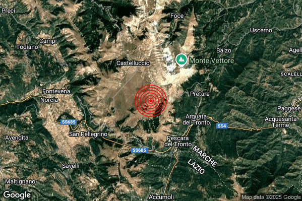 Oggi 25/12/2025 alle ore 17:47:11 (ora locale Italiana – 16:47:11 UTC) è stato registrato un Debole #Terremoto di magnitudo M2.4 con epicentro “6 km W Arquata del Tronto (AP)” Latitudine: 42.79 Longitudine: 13.23 mostrato sulla mappa.