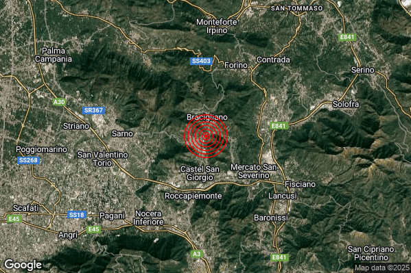 Oggi 25/12/2025 alle ore 21:40:26 (ora locale Italiana – 20:40:26 UTC) è stato registrato un Debole #Terremoto di magnitudo M2.3 con epicentro “1 km NE Siano (SA)” Latitudine: 40.81 Longitudine: 14.7 mostrato sulla mappa.