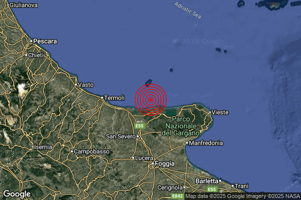 N.B. I valori della magnitudo e delle coordinate rappresentano la migliore stima con i dati ufficiali a disposizione. Eventuali nuovi dati o ulteriori analisi potrebbero far variare tali stime.