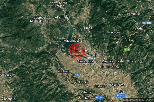 Oggi 29/12/2025 alle ore 03:45:30 (ora locale Italiana – 02:45:30 UTC) è stato registrato un Debole #Terremoto di magnitudo M2.6 con epicentro “4 km W Sansepolcro (AR)” Latitudine: 43.58 Longitudine: 12.09 mostrato sulla mappa.