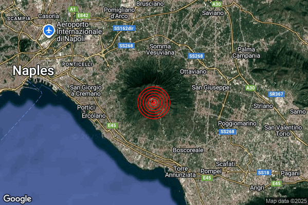 Oggi 30/12/2025 alle ore 00:00:36 (ora locale Italiana – 23:00:36 UTC) è stato registrato un Lieve #Terremoto di magnitudo M2.2 con epicentro “Vesuvio” Latitudine: 40.82 Longitudine: 14.43 mostrato sulla mappa.