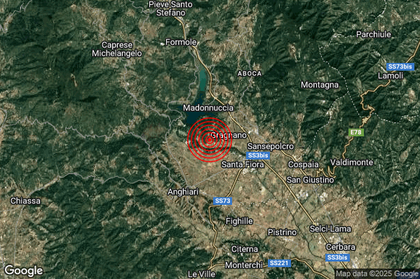 Oggi 30/12/2025 alle ore 14:28:24 (ora locale Italiana – 13:28:24 UTC) è stato registrato un Lieve #Terremoto di magnitudo M2.0 con epicentro “4 km NE Anghiari (AR)” Latitudine: 43.58 Longitudine: 12.08 mostrato sulla mappa.
