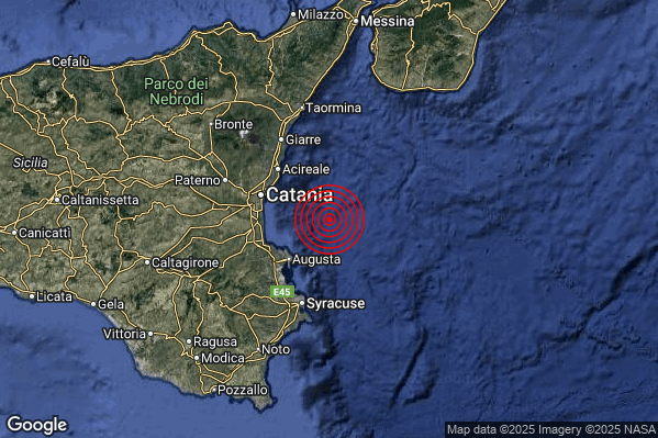 Oggi 30/12/2025 alle ore 19:11:31 (ora locale Italiana – 18:11:31 UTC) è stato registrato un Lieve #Terremoto di magnitudo M2.2 con epicentro “Costa Catanese (Catania)” Latitudine: 37.41 Longitudine: 15.42 mostrato sulla mappa.