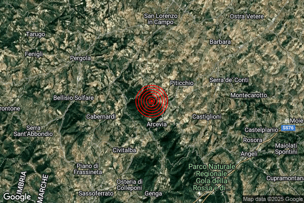 Oggi 31/12/2025 alle ore 00:01:31 (ora locale Italiana – 23:01:31 UTC) è stato registrato un Lieve #Terremoto di magnitudo M2.0 con epicentro “2 km N Arcevia (AN)” Latitudine: 43.52 Longitudine: 12.93 mostrato sulla mappa.