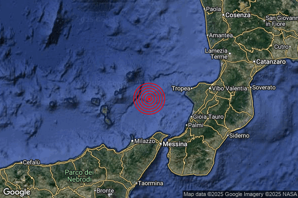 N.B. I valori della magnitudo e delle coordinate rappresentano la migliore stima con i dati ufficiali a disposizione. Eventuali nuovi dati o ulteriori analisi potrebbero far variare tali stime.