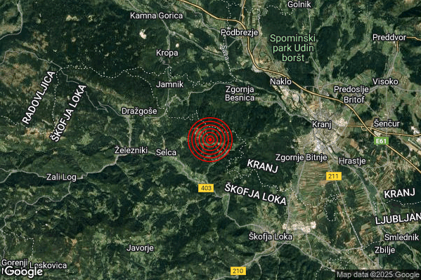 Oggi 31/12/2025 alle ore 18:47:30 (ora locale Italiana – 17:47:30 UTC) è stato registrato un Lieve #Terremoto di magnitudo M2.1 con epicentro “Slovenia (SLOVENIA)” Latitudine: 46.23 Longitudine: 14.25 mostrato sulla mappa.