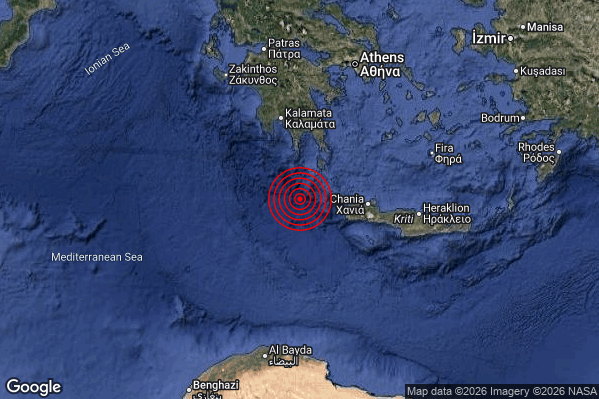 Oggi 08/01/2026 alle ore 02:50:07 (ora locale Italiana – 01:50:07 UTC) è stato registrato un Intenso #Terremoto di magnitudo M4.7 con epicentro “Greece [Sea]” Latitudine: 35.6 Longitudine: 22.51 mostrato sulla mappa.