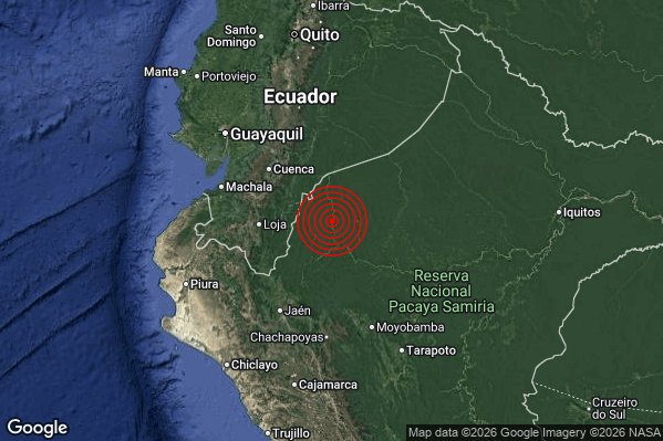 Oggi 08/01/2026 alle ore 06:17:52 (ora locale Italiana – 05:17:52 UTC) è stato registrato un Violento #Terremoto di magnitudo M5.7 con epicentro “Peru [Land]” Latitudine: -3.92 Longitudine: -77.77 mostrato sulla mappa.