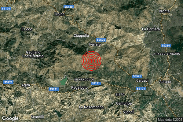 Oggi 09/01/2026 alle ore 16:45:37 (ora locale Italiana – 15:45:37 UTC) è stato registrato un Debole #Terremoto di magnitudo M2.3 con epicentro “6 km NE Regalbuto (EN)” Latitudine: 37.7 Longitudine: 14.67 mostrato sulla mappa.