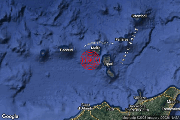 Oggi 11/01/2026 alle ore 05:44:48 (ora locale Italiana – 04:44:48 UTC) è stato registrato un Debole #Terremoto di magnitudo M2.4 con epicentro “Isole Eolie (Messina)” Latitudine: 38.49 Longitudine: 14.78 mostrato sulla mappa.