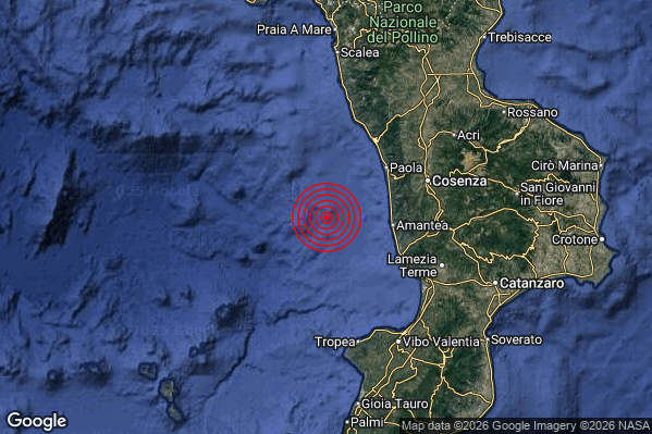 Oggi 11/01/2026 alle ore 07:20:01 (ora locale Italiana – 06:20:01 UTC) è stato registrato un Leggero #Terremoto di magnitudo M3.2 con epicentro “Costa Calabra nord-occidentale (Cosenza)” Latitudine: 39.17 Longitudine: 15.73 mostrato sulla mappa.