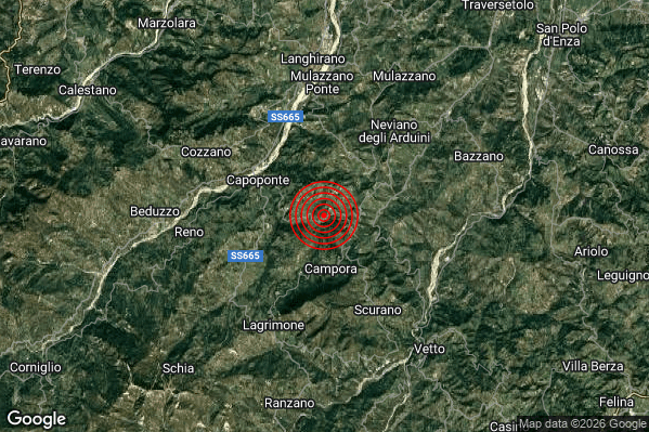 N.B. I valori della magnitudo e delle coordinate rappresentano la migliore stima con i dati ufficiali a disposizione. Eventuali nuovi dati o ulteriori analisi potrebbero far variare tali stime.
