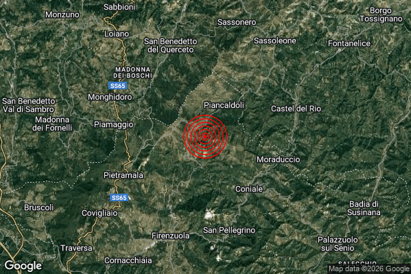 Oggi 14/01/2026 alle ore 18:40:39 (ora locale Italiana – 17:40:39 UTC) è stato registrato un Lieve #Terremoto di magnitudo M2.0 con epicentro “8 km W Castel del Rio (BO)” Latitudine: 44.19 Longitudine: 11.41 mostrato sulla mappa.