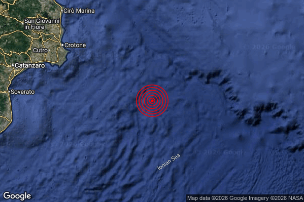Oggi 15/01/2026 alle ore 09:38:51 (ora locale Italiana – 08:38:51 UTC) è stato registrato un Moderato #Terremoto di magnitudo M3.4 con epicentro “Mar Ionio Settentrionale (MARE)” Latitudine: 38.61 Longitudine: 18.1 mostrato sulla mappa.