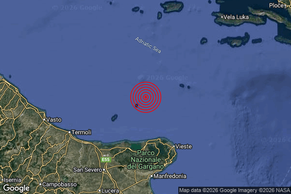 N.B. I valori della magnitudo e delle coordinate rappresentano la migliore stima con i dati ufficiali a disposizione. Eventuali nuovi dati o ulteriori analisi potrebbero far variare tali stime.