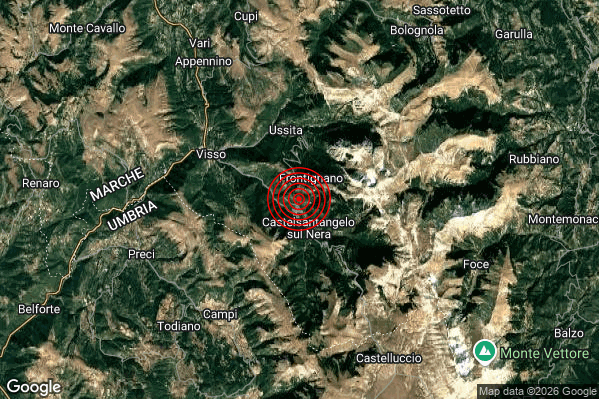 N.B. I valori della magnitudo e delle coordinate rappresentano la migliore stima con i dati ufficiali a disposizione. Eventuali nuovi dati o ulteriori analisi potrebbero far variare tali stime.