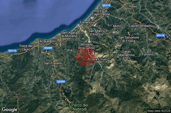 Oggi 18/01/2026 alle ore 14:54:15 (ora locale Italiana – 13:54:15 UTC) è stato registrato un Distinto #Terremoto di magnitudo M4.0 con epicentro “2 km S Militello Rosmarino (ME)” Latitudine: 38.03 Longitudine: 14.67 mostrato sulla mappa.