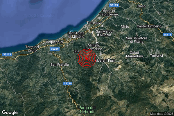 Oggi 18/01/2026 alle ore 14:58:14 (ora locale Italiana – 13:58:14 UTC) è stato registrato un Lieve #Terremoto di magnitudo M2.1 con epicentro “3 km SW Militello Rosmarino (ME)” Latitudine: 38.03 Longitudine: 14.66 mostrato sulla mappa.
