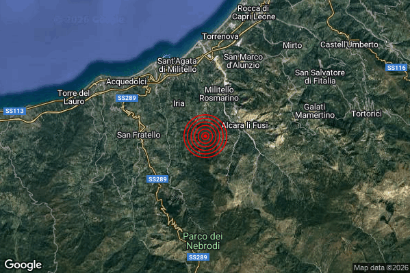 Oggi 19/01/2026 alle ore 05:47:28 (ora locale Italiana – 04:47:28 UTC) è stato registrato un Debole #Terremoto di magnitudo M2.7 con epicentro “4 km W Alcara li Fusi (ME)” Latitudine: 38.01 Longitudine: 14.66 mostrato sulla mappa.