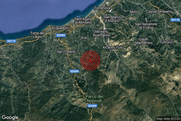 Oggi 19/01/2026 alle ore 11:50:15 (ora locale Italiana – 10:50:15 UTC) è stato registrato un Leggero #Terremoto di magnitudo M2.9 con epicentro “5 km E San Fratello (ME)” Latitudine: 38 Longitudine: 14.65 mostrato sulla mappa.