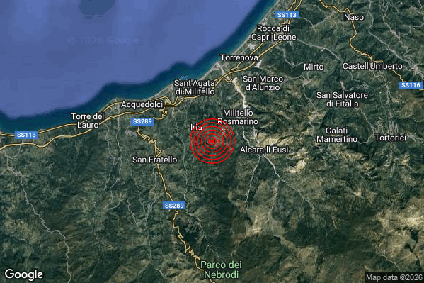 Oggi 19/01/2026 alle ore 21:01:21 (ora locale Italiana – 20:01:21 UTC) è stato registrato un Debole #Terremoto di magnitudo M2.3 con epicentro “3 km SW Militello Rosmarino (ME)” Latitudine: 38.03 Longitudine: 14.65 mostrato sulla mappa.