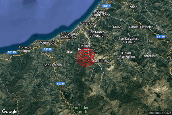 Oggi 20/01/2026 alle ore 06:16:51 (ora locale Italiana – 05:16:51 UTC) è stato registrato un Debole #Terremoto di magnitudo M2.3 con epicentro “2 km S Militello Rosmarino (ME)” Latitudine: 38.03 Longitudine: 14.68 mostrato sulla mappa.