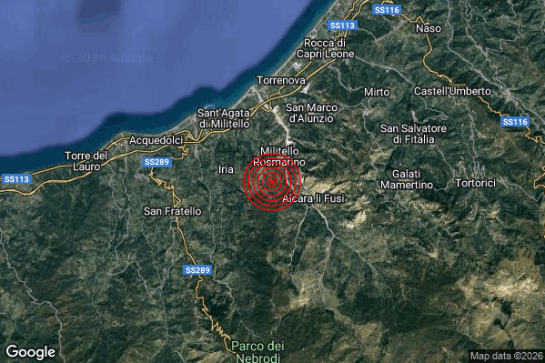 Oggi 20/01/2026 alle ore 21:13:03 (ora locale Italiana – 20:13:03 UTC) è stato registrato un Lieve #Terremoto di magnitudo M2.1 con epicentro “2 km S Militello Rosmarino (ME)” Latitudine: 38.03 Longitudine: 14.67 mostrato sulla mappa.