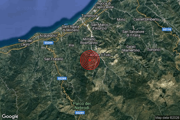 Oggi 20/01/2026 alle ore 23:49:18 (ora locale Italiana – 22:49:18 UTC) è stato registrato un Lieve #Terremoto di magnitudo M2.1 con epicentro “2 km SW Alcara li Fusi (ME)” Latitudine: 38.01 Longitudine: 14.68 mostrato sulla mappa.