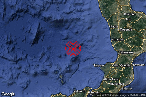 N.B. I valori della magnitudo e delle coordinate rappresentano la migliore stima con i dati ufficiali a disposizione. Eventuali nuovi dati o ulteriori analisi potrebbero far variare tali stime.