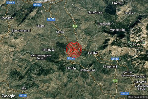 Oggi 24/01/2026 alle ore 06:03:19 (ora locale Italiana – 05:03:19 UTC) è stato registrato un Leggero #Terremoto di magnitudo M3.0 con epicentro “5 km N Sclafani Bagni (PA)” Latitudine: 37.86 Longitudine: 13.85 mostrato sulla mappa.