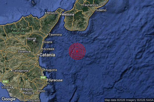 Oggi 24/01/2026 alle ore 18:59:33 (ora locale Italiana – 17:59:33 UTC) è stato registrato un Lieve #Terremoto di magnitudo M2.1 con epicentro “Mar Ionio Meridionale (MARE)” Latitudine: 37.57 Longitudine: 15.91 mostrato sulla mappa.